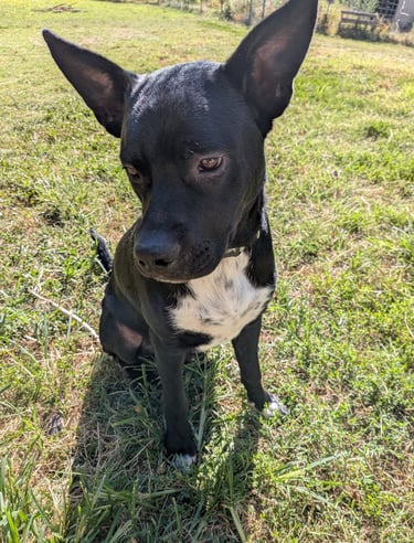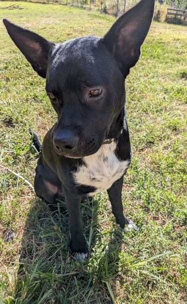 Description: This boy will make you laugh. With an incredibly cute old man face and a goofy personality, life with Bo will never be boring. He loves to play but is not over the top energetic. He loves tennis balls and will play fetch with you. Like his sister, he is very smart and learns commands very quickly. He knows sit and down. He will also come when his name is called. He is working on walking on a leash. Good with kids. Can be a little forward when meeting new dogs, so introductions just need to be slow.